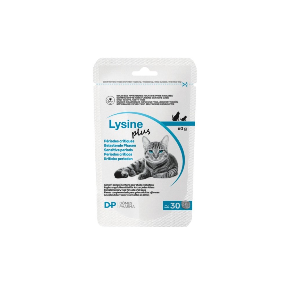 L-Lisina 500 mg, Cisteína, Vitamina B6, ingrediente palatable.