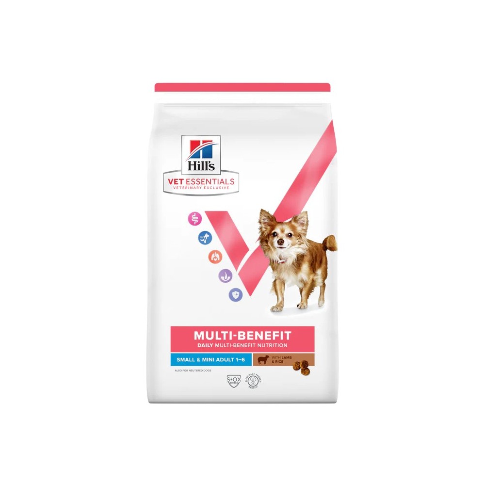 Hill's VET ESSENTIALS MULTI-BENEFIT alimento para perros adultos de razas pequeñas y mini con cordero y arroz es un alimento completo con múltiples beneficios para perros adultos de razas pequeñas y mini de 1 a 6 años de edad. Proporciona el equilibrio nutricional preciso de energía, proteína, vitaminas y minerales