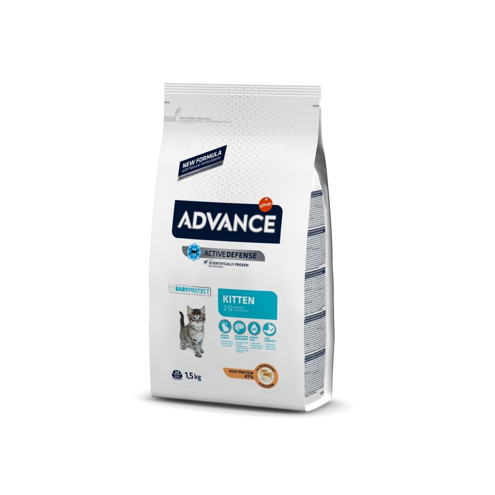 Se o seu gatinho tem menos de 1 ano, ele está na fase em que ele experimenta mais mudanças físicas e comportamentais, então ele precisa de um produto específico para ajudá-lo a crescer forte e saudável. ADVANCE Kitten é um alimento de alta gama, especificamente formulado para cobrir as necessidades dos gatinhos e das mães no final da gestação e durante a amamentação. Graças à sua fórmula exclusiva suplementada com nucleotídeos, ADVANCE Kitten favorece um crescimento ótimo, ajudando o desenvolvimento do cérebro e da visão, enquanto reforça as defesas naturais do gatinho protegendo sua saúde. ADVANCE Kitten é especialmente indicado para gatinhos de 2 a 12 meses e para gatas gestantes e lactantes.