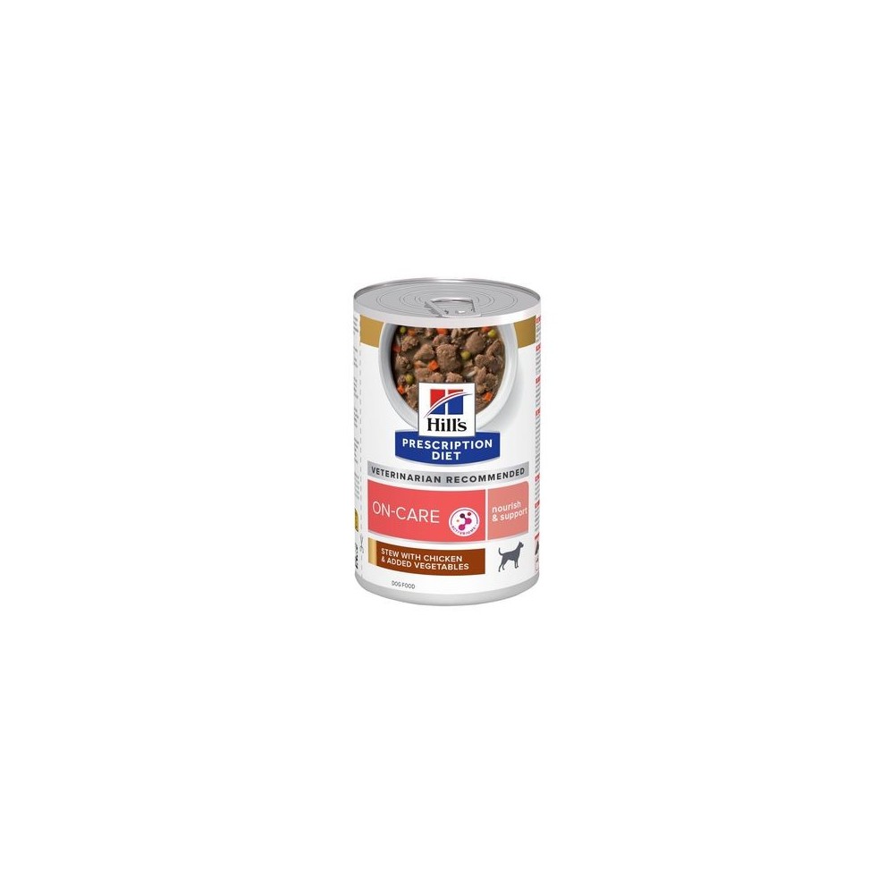A Ração Hill's Prescription Diet ON-Care Chicken Dog é um alimento dietético completo para cães adultos, para recuperação nutricional e convalescença. Este alimento é rico em energia, possui elevadas concentrações de nutrientes essenciais e é altamente digerível.